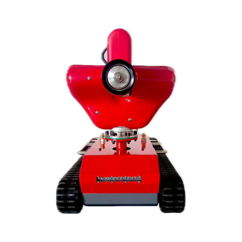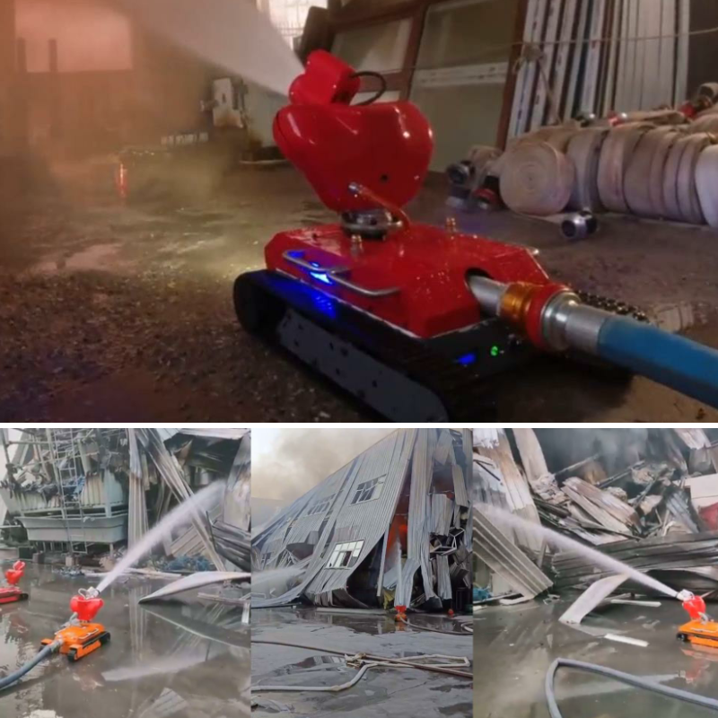 在某医疗器械工厂的火灾事故中,仓库内存放了大量的易燃易爆的稀料,为保障救援人员的人身安全,指挥人员出动了三台本设备参加实战,由救援人员远程操控本设备就近对危险品持续降温,直至火势被控制,危险品完好。