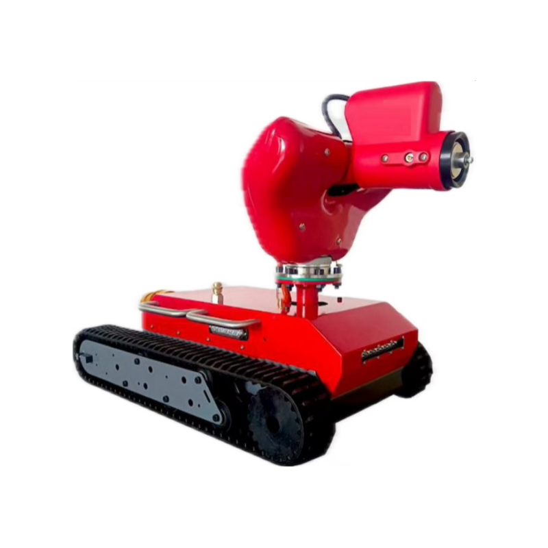 小型履带式电动水炮,车载便携,同类的消防机器人重量大,约600kg,需要专用的运输车来运载;设备尺寸小,可以随消防车出勤,重量轻只有57kg,两人可以轻松抬动;部署快速:30秒内完成部署,1分钟内投入战斗;
