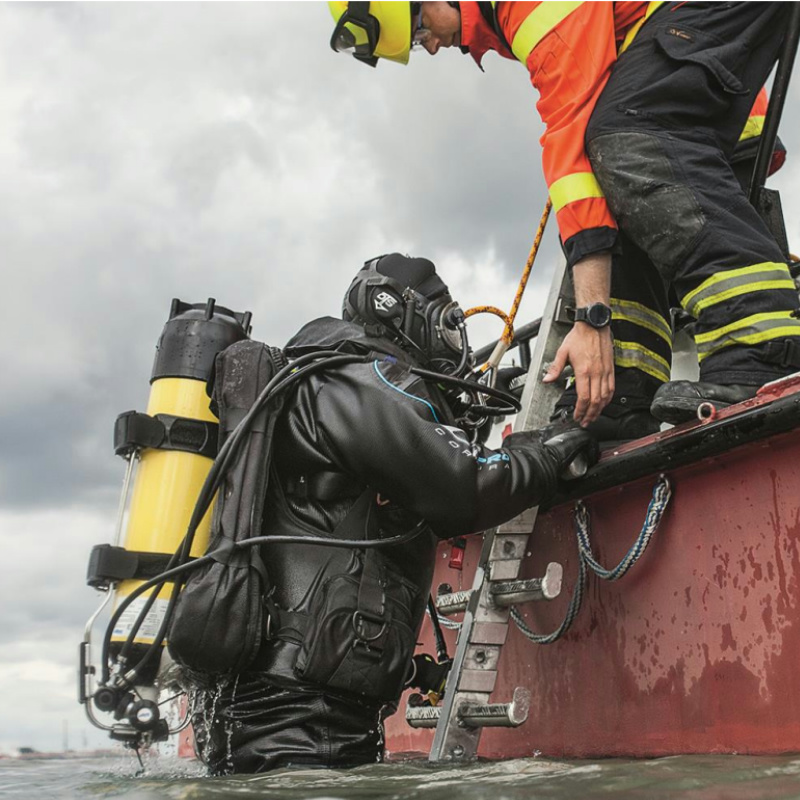 专业潜水对设备的要求极为严格,所有系统部件都需要具备高度的灵活性和可靠性。Secor 7000 调节器与开路式潜水系统和德尔格Panorama Nova Dive 全罩式面罩采用集成设计,可以最大程度上满足专业潜水的需求。同样,一级与二级调节器的有机组合确保您能够更加安全和舒适地呼吸。通过这些独特的设计,使得整个系统完全适用于在极端的冷水(2 °C - 40 °C)环境中安全使用。